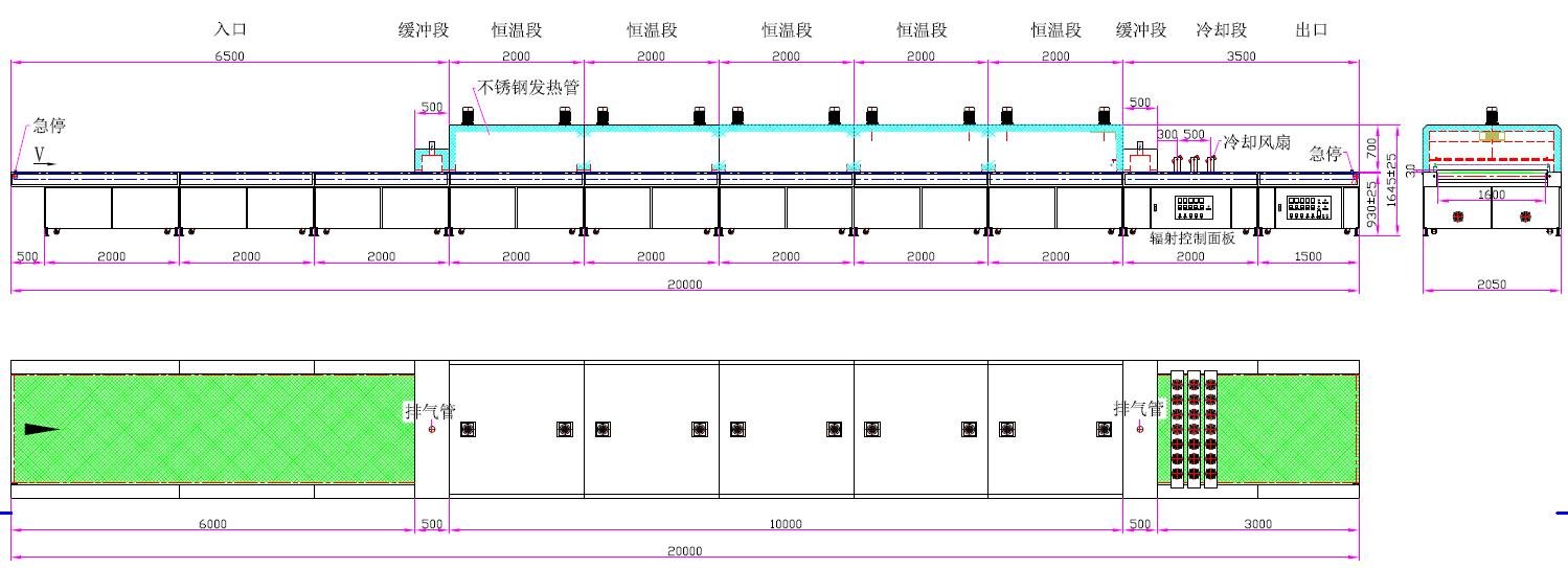2. 發(fā)熱管安裝在工件上方
