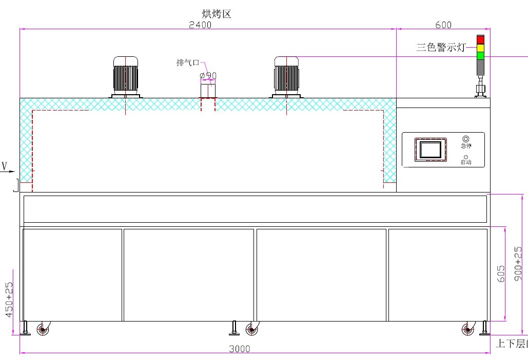 2、發(fā)熱管安裝在工件上方